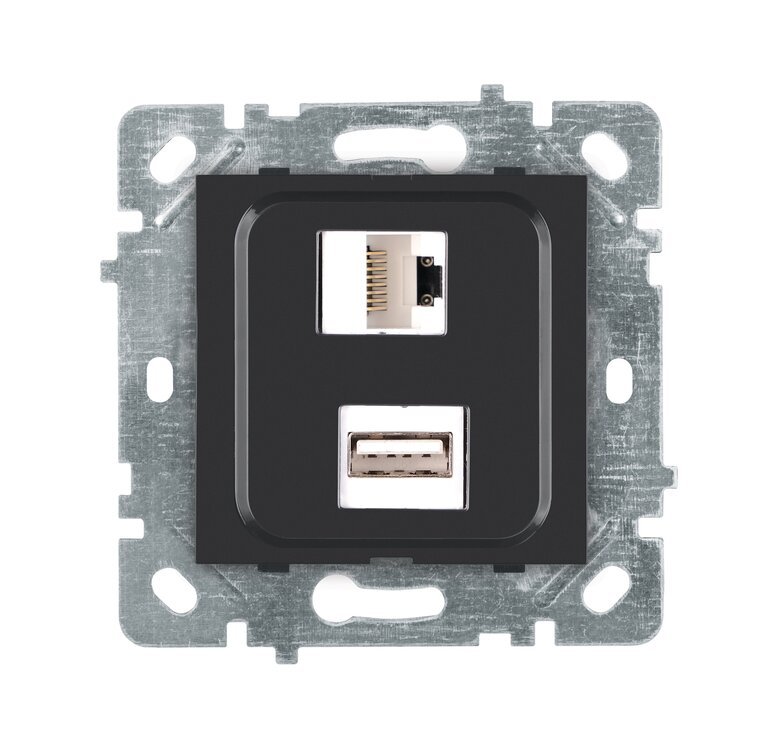 Selene Natürel Mekanizma Kapak USB + DATA CAT5 (Şarj Etme Özelliği Yoktur) Jaklı Antrasit