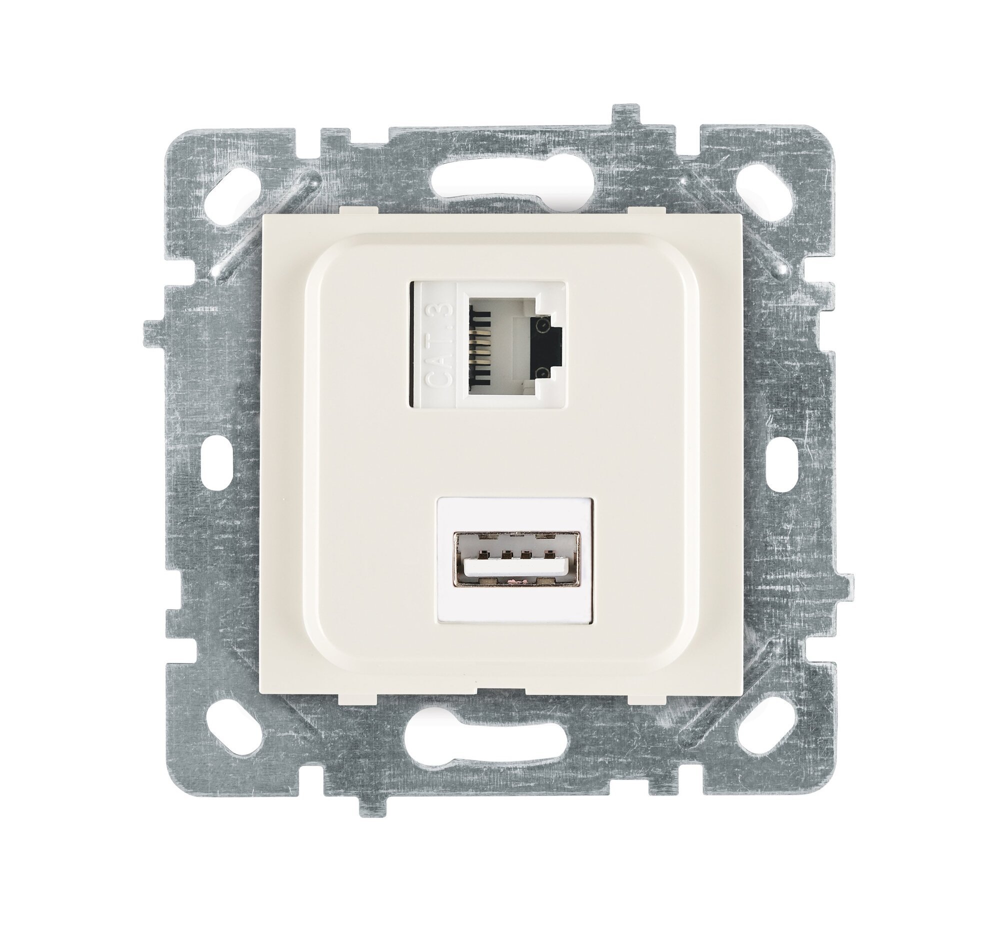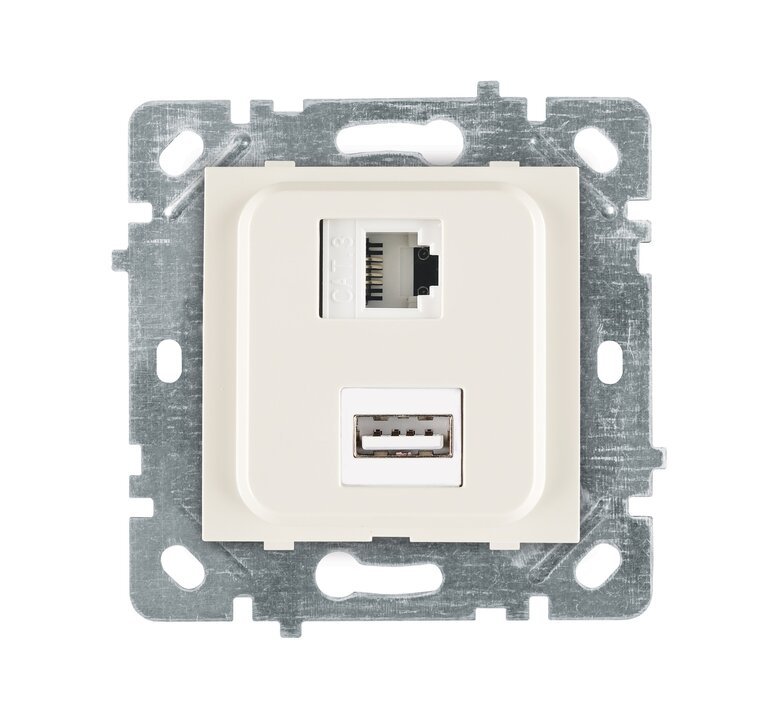 Selene Natürel Mekanizma Kapak USB + DATA CAT5 (Şarj Etme Özelliği Yoktur) Jaklı Krem